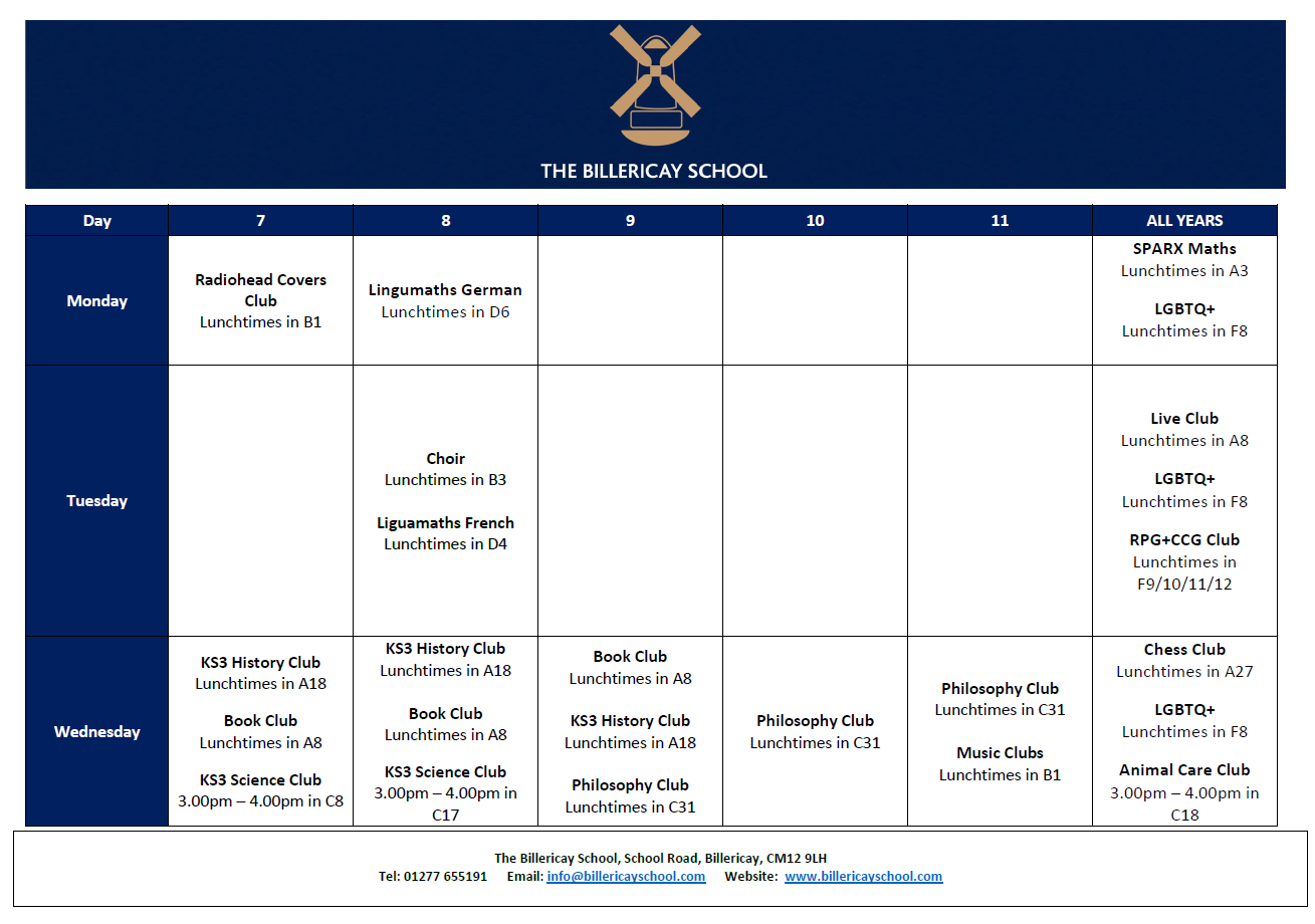 Please find below details of the Extra Curricular Clubs available for 2025/26