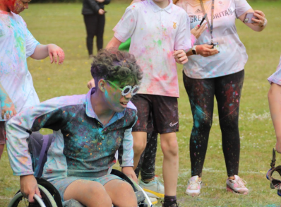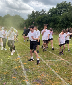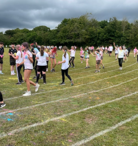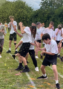 On Friday 5 July 2024, as part of The Billericay Adventure Programme, we held a Year 7 and 8 extra-curricular Adventure Challenge Day. Students were involved in a carousel of activities designed to challenge, but also develop teamwork, resilience and sense of adventure. We had indoor inflatables, capture the flag, benchball, Justdance and our own 'army style' assault course. Students also had classroom based activities based on the Paris Olympics and a visit from 'King Wippy' the ice cream van. The afternoon saw a break in the clouds and over 500 students took part in a colour run on our bottom field. A wonderful day was had by all, despite the weather's attempts to thwart our fun.